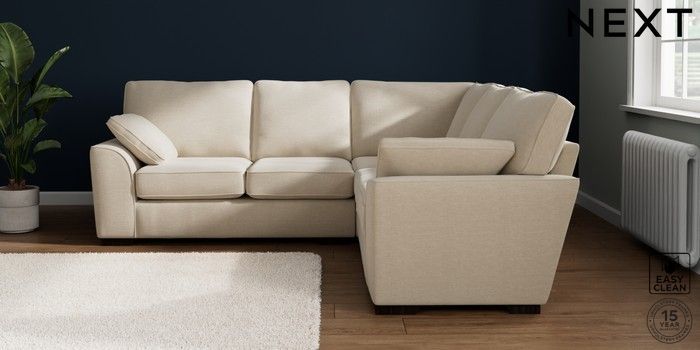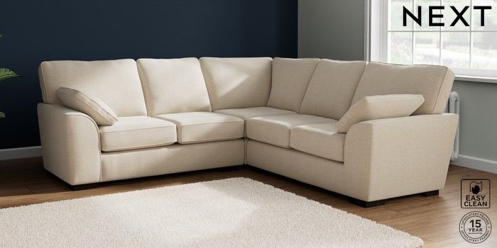 7.2.6 Buy Stamford Medium Corner Sofa - Universal Fine Chenille Easy Clean Oyster Large Square Angle - Dark from the Next UK online shop Click here to use our accessible website
