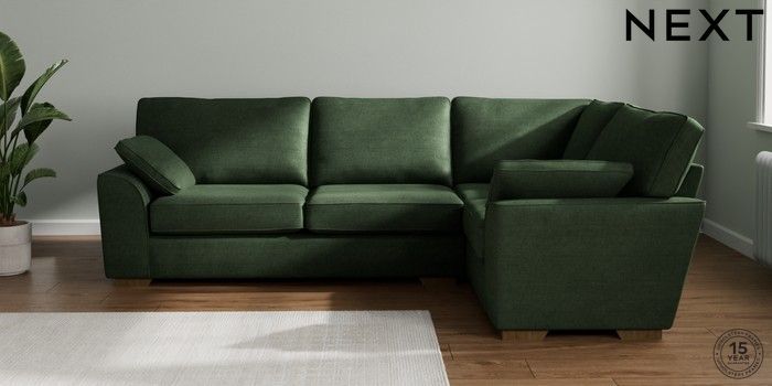 7.2.6 Buy Stamford Large Corner Sofa - Right Hand Luxe Chenille Dark Green Large Square Angle - Mid from the Next UK online shop Click here to use our accessible website