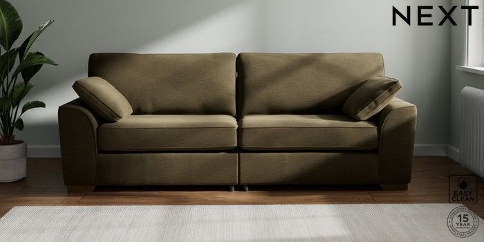 7.2.6 Buy Stamford 4 Seater Sofa Fine Chenille Easy Clean Dark Moss Green Large Square Angle - Mid from the Next UK online shop Click here to use our accessible website