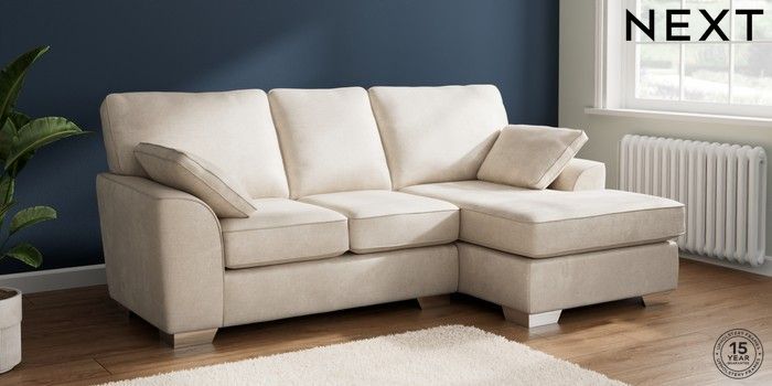 7.2.6 Buy Stamford Small Sofa Chaise - Right Hand Plush Chenille Oyster Large Square Angle - Chrome Metal from the Next UK online shop Click here to use our accessible website