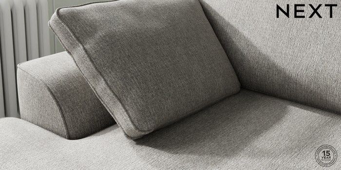 7.2.10 Buy Stamford Medium Sofa Chaise - Left Hand Tweedy Chenille Mid Grey Large Square Angle - Brushed Brass from the Next UK online shop Click here to use our accessible website