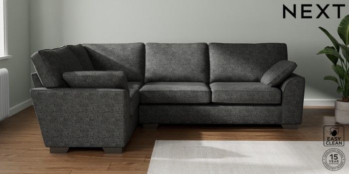7.3.1 Buy Stamford Large Corner Sofa - Left Hand Boucle Weave Easy Clean Charcoal Grey Large Square Angle - Gunmetal from the Next UK online shop Click here to use our accessible website