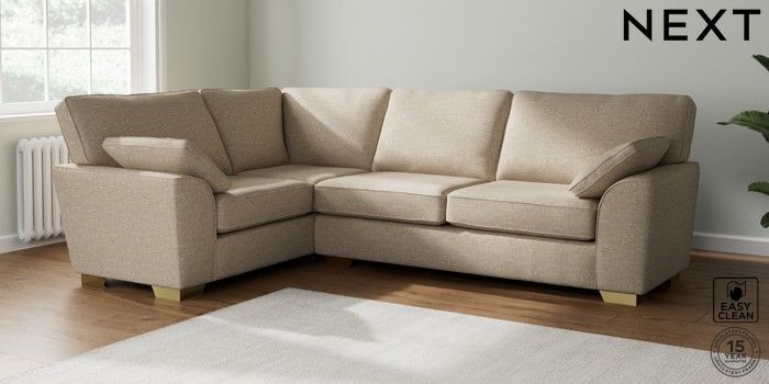7.2.6 Buy Stamford Large Corner Sofa - Left Hand Boucle Weave Easy Clean Dark Natural Large Square Angle - Brushed Brass from the Next UK online shop Click here to use our accessible website