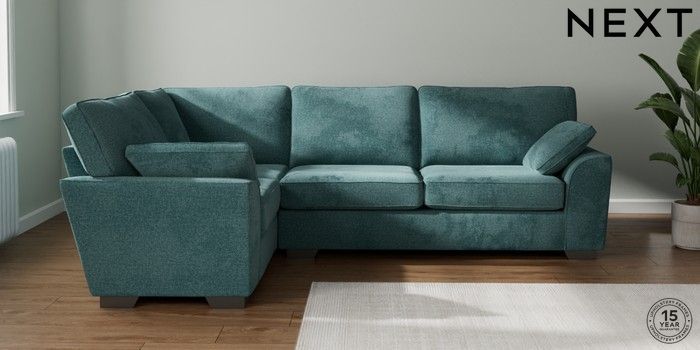 7.2.10 Buy Stamford Large Corner Sofa - Left Hand Chunky Chenille Mid Teal Green Large Square Angle - Gunmetal from the Next UK online shop Click here to use our accessible website