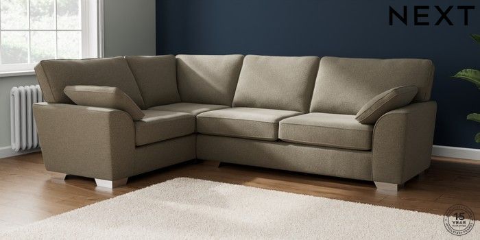 7.2.10 Buy Stamford Large Corner Sofa - Left Hand Chunky Marl Light Olive Green Large Square Angle - Chrome Metal from the Next UK online shop Click here to use our accessible website