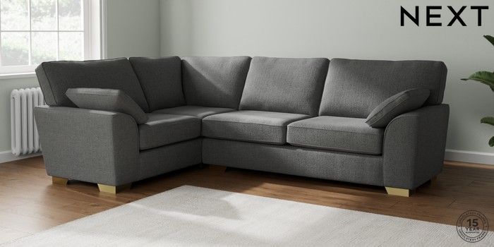 7.2.10 Buy Stamford Large Corner Sofa - Left Hand Chunky Texture Dark Grey Large Square Angle - Brushed Brass from the Next UK online shop Click here to use our accessible website