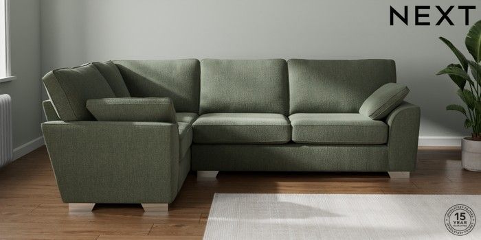 7.2.10 Buy Stamford Large Corner Sofa - Left Hand Chunky Texture Mid Forest Green Large Square Angle - Chrome Metal from the Next UK online shop Click here to use our accessible website