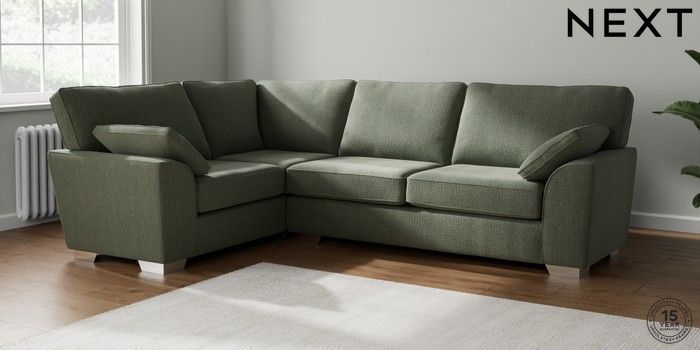 6.12.1 Buy Stamford Large Corner Sofa - Left Hand Chunky Texture Mid Forest Green Large Square Angle - Chrome Metal from the Next UK online shop Click here to use our accessible website