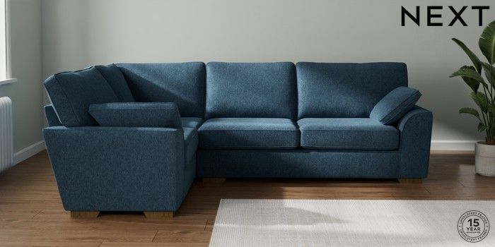 7.2.10 Buy Stamford Large Corner Sofa - Left Hand Cotswold Chenille Dark Blue Large Square Angle - Mid from the Next UK online shop Click here to use our accessible website
