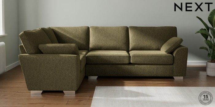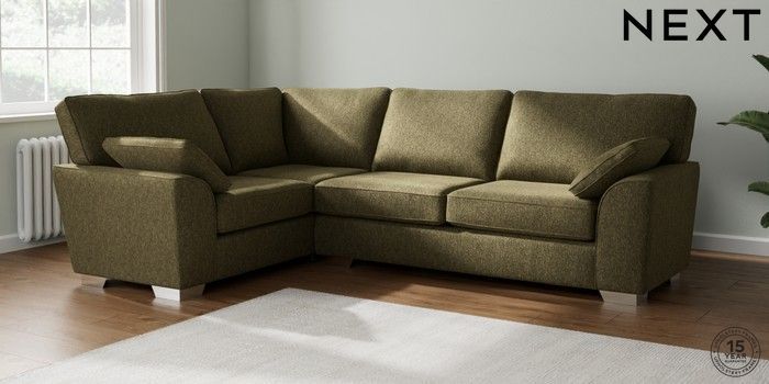 7.2.10 Buy Stamford Large Corner Sofa - Left Hand Cotswold Chenille Dark Green Large Square Angle - Chrome Metal from the Next UK online shop Click here to use our accessible website