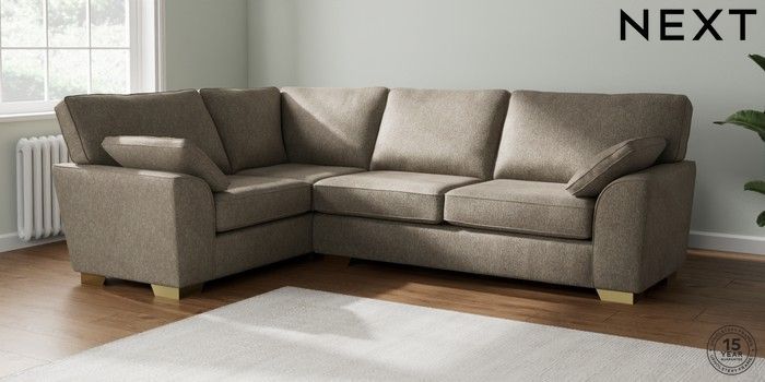 7.2.6 Buy Stamford Large Corner Sofa - Left Hand Cotswold Chenille Mid Mink Brown Large Square Angle - Brushed Brass from the Next UK online shop Click here to use our accessible website