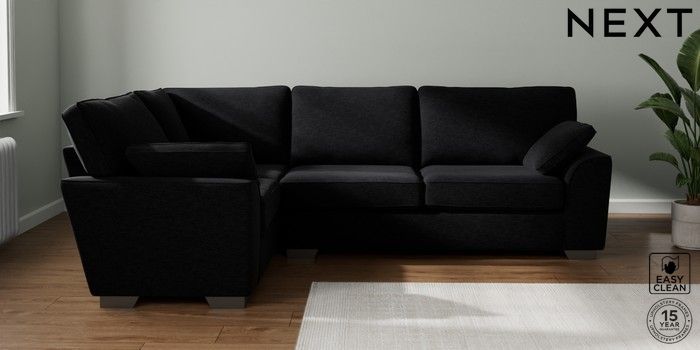7.2.10 Buy Stamford Large Corner Sofa - Left Hand Fine Chenille Easy Clean Black Large Square Angle - Gunmetal from the Next UK online shop Click here to use our accessible website