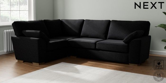 7.2.10 Buy Stamford Large Corner Sofa - Left Hand Fine Chenille Easy Clean Black Large Square Angle - Mid from the Next UK online shop Click here to use our accessible website