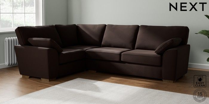 7.2.10 Buy Stamford Large Corner Sofa - Left Hand Fine Chenille Easy Clean Chocolate Brown Large Square Angle - Mid from the Next UK online shop Click here to use our accessible website