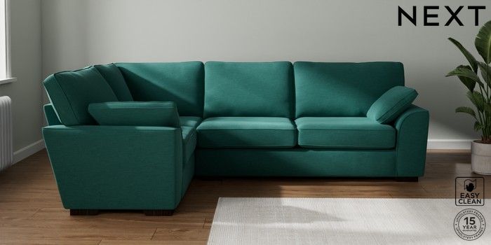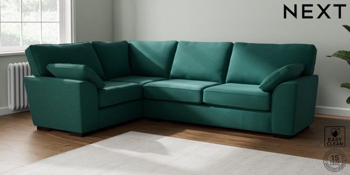 7.2.10 Buy Stamford Large Corner Sofa - Left Hand Fine Chenille Easy Clean Dark Juniper Green Large Square Angle - Dark from the Next UK online shop Click here to use our accessible website