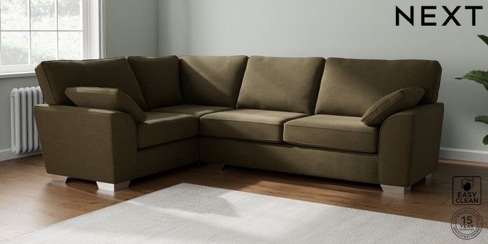 7.2.10 Buy Stamford Large Corner Sofa - Left Hand Fine Chenille Easy Clean Dark Moss Green Large Square Angle - Chrome Metal from the Next UK online shop Click here to use our accessible website