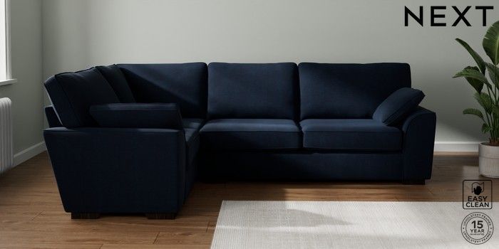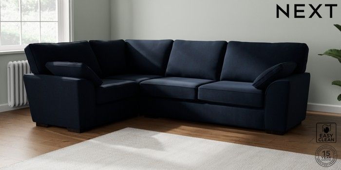 7.2.10 Buy Stamford Large Corner Sofa - Left Hand Fine Chenille Easy Clean Dark Navy Blue Large Square Angle - Dark from the Next UK online shop Click here to use our accessible website