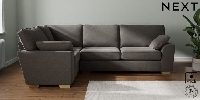 7.2.10 Buy Stamford Large Corner Sofa - Left Hand Fine Chenille Easy Clean Dark Smoke Grey Large Square Angle - Brushed Brass from the Next UK online shop Click here to use our accessible website