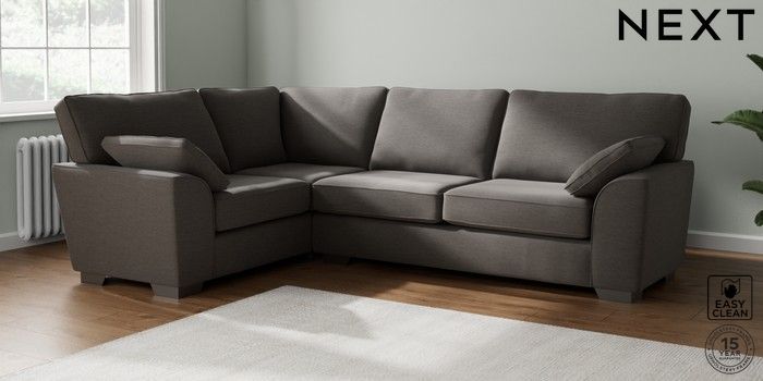 7.2.6 Buy Stamford Large Corner Sofa - Left Hand Fine Chenille Easy Clean Dark Smoke Grey Large Square Angle - Gunmetal from the Next UK online shop Click here to use our accessible website