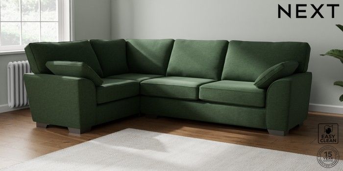 7.3.1 Buy Stamford Large Corner Sofa - Left Hand Fine Chenille Easy Clean Mid Khaki Green Large Square Angle - Gunmetal from the Next UK online shop Click here to use our accessible website