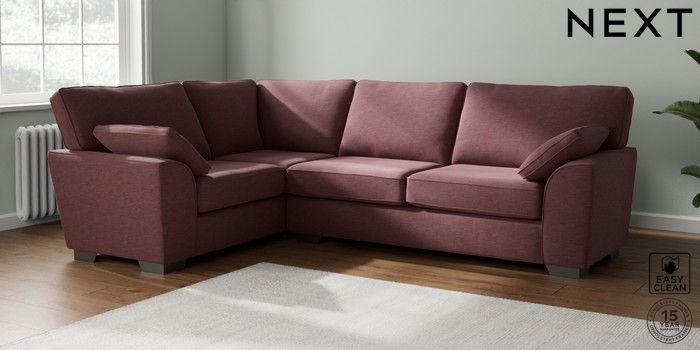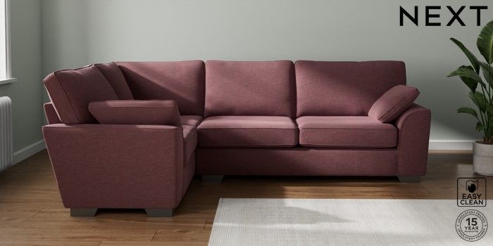 7.3.1 Buy Stamford Large Corner Sofa - Left Hand Fine Chenille Easy Clean Mid Mulberry Purple Large Square Angle - Gunmetal from the Next UK online shop Click here to use our accessible website