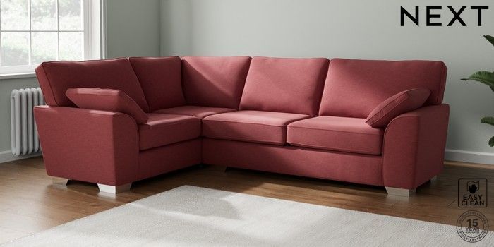 7.2.6 Buy Stamford Large Corner Sofa - Left Hand Fine Chenille Easy Clean Mid Pink Large Square Angle - Chrome Metal from the Next UK online shop Click here to use our accessible website