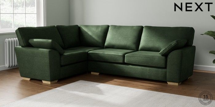 7.2.6 Buy Stamford Large Corner Sofa - Left Hand Luxe Chenille Dark Green Large Square Angle - Light from the Next UK online shop Click here to use our accessible website