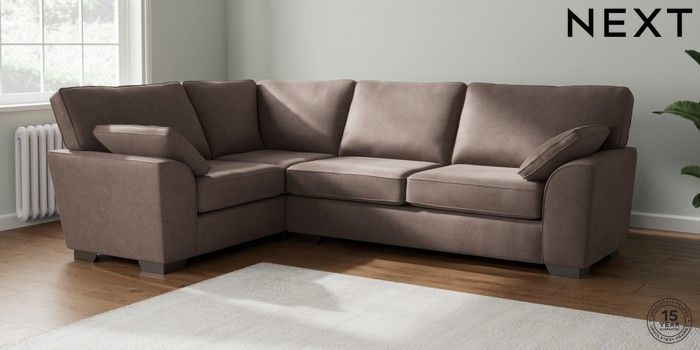 6.12.1 Buy Stamford Large Corner Sofa - Left Hand Luxe Chenille Mink Brown Large Square Angle - Gunmetal from the Next UK online shop Click here to use our accessible website