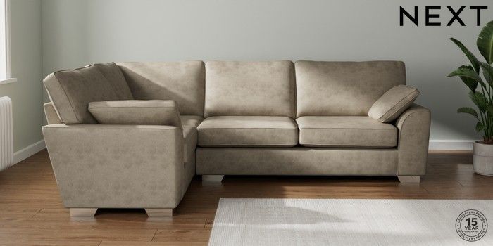 7.3.1 Buy Stamford Large Corner Sofa - Left Hand Monza Faux Leather Easy Clean Mink Brown Large Square Angle - Chrome Metal from the Next UK online shop Click here to use our accessible website