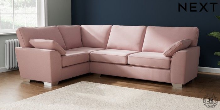 7.2.10 Buy Stamford Large Corner Sofa - Left Hand Natural Mix Light Rose Pink Large Square Angle - Chrome Metal from the Next UK online shop Click here to use our accessible website