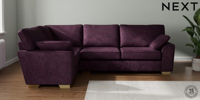 7.2.10 Buy Stamford Large Corner Sofa - Left Hand Plush Chenille Dark Plum Purple Large Square Angle - Brushed Brass from the Next UK online shop Click here to use our accessible website