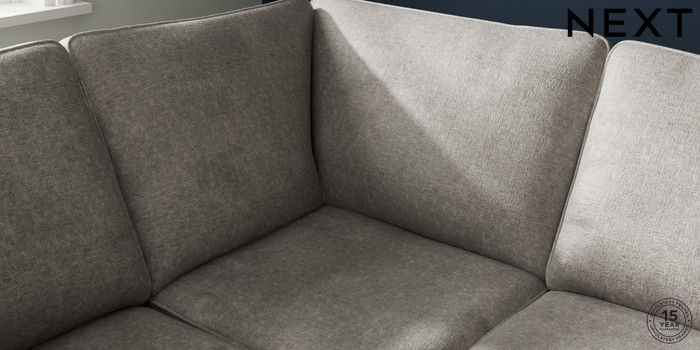 7.2.10 Buy Stamford Large Corner Sofa - Left Hand Plush Chenille Light Grey Large Square Angle - Brushed Brass from the Next UK online shop Click here to use our accessible website