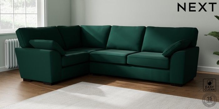 6.12.1 Buy Stamford Large Corner Sofa - Left Hand Plush Velvet Easy Clean Bottle Green Large Square Angle - Dark from the Next UK online shop Click here to use our accessible website
