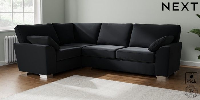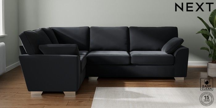 7.3.1 Buy Stamford Large Corner Sofa - Left Hand Plush Velvet Easy Clean Charcoal Grey Large Square Angle - Chrome Metal from the Next UK online shop Click here to use our accessible website