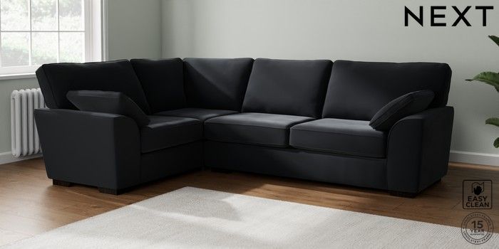 7.2.10 Buy Stamford Large Corner Sofa - Left Hand Plush Velvet Easy Clean Charcoal Grey Large Square Angle - Dark from the Next UK online shop Click here to use our accessible website