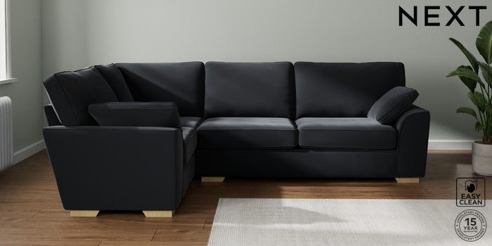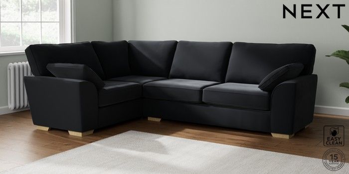 7.2.10 Buy Stamford Large Corner Sofa - Left Hand Plush Velvet Easy Clean Charcoal Grey Large Square Angle - Light from the Next UK online shop Click here to use our accessible website