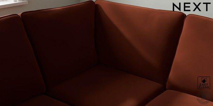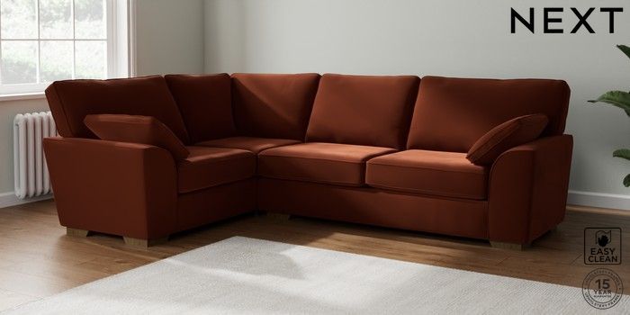 7.2.10 Buy Stamford Large Corner Sofa - Left Hand Plush Velvet Easy Clean Ginger Orange Large Square Angle - Mid from the Next UK online shop Click here to use our accessible website