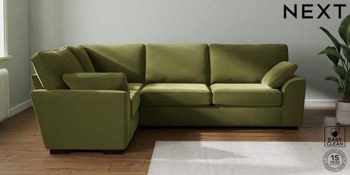 7.2.10 Buy Stamford Large Corner Sofa - Left Hand Plush Velvet Easy Clean Mid Olive Green Large Square Angle - Dark from the Next UK online shop Click here to use our accessible website