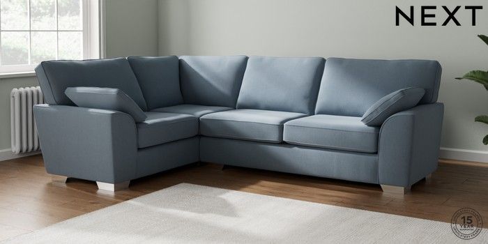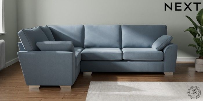 7.2.10 Buy Stamford Large Corner Sofa - Left Hand Relaxed Linen Look Mid Blue Large Square Angle - Chrome Metal from the Next UK online shop Click here to use our accessible website