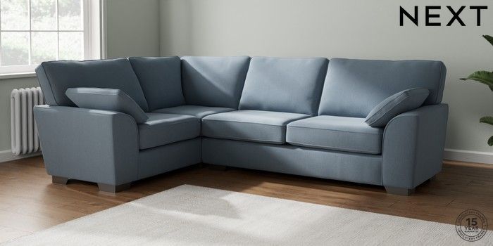 7.2.10 Buy Stamford Large Corner Sofa - Left Hand Relaxed Linen Look Mid Blue Large Square Angle - Gunmetal from the Next UK online shop Click here to use our accessible website