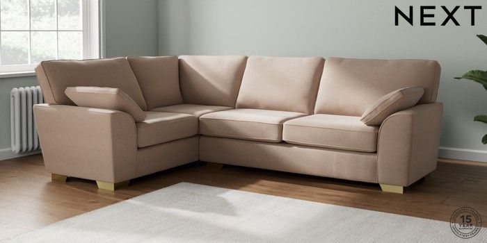7.2.10 Buy Stamford Large Corner Sofa - Left Hand Relaxed Linen Look Mid Natural Large Square Angle - Brushed Brass from the Next UK online shop Click here to use our accessible website