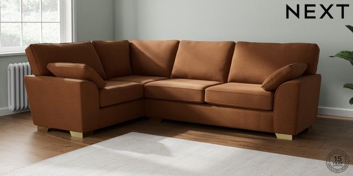 7.2.10 Buy Stamford Large Corner Sofa - Left Hand Ripple Chenille Mid Rust Brown Large Square Angle - Brushed Brass from the Next UK online shop Click here to use our accessible website