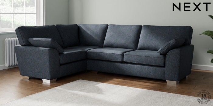 7.3.1 Buy Stamford Large Corner Sofa - Left Hand Tweedy Chenille Navy Blue Large Square Angle - Chrome Metal from the Next UK online shop Click here to use our accessible website
