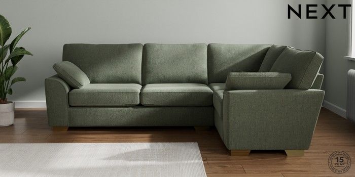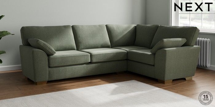 7.2.10 Buy Stamford Large Corner Sofa - Right Hand Chunky Texture Mid Forest Green Large Square Angle - Brushed Brass from the Next UK online shop Click here to use our accessible website