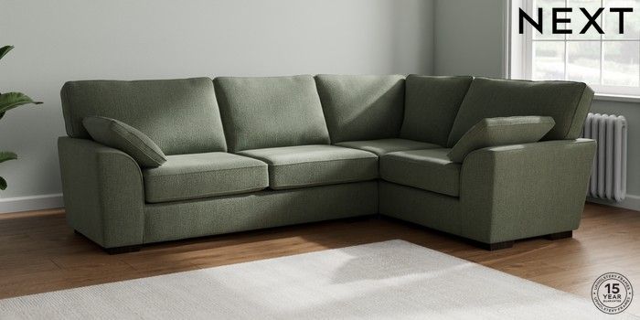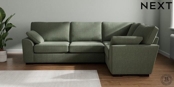 7.2.10 Buy Stamford Large Corner Sofa - Right Hand Chunky Texture Mid Forest Green Large Square Angle - Dark from the Next UK online shop Click here to use our accessible website