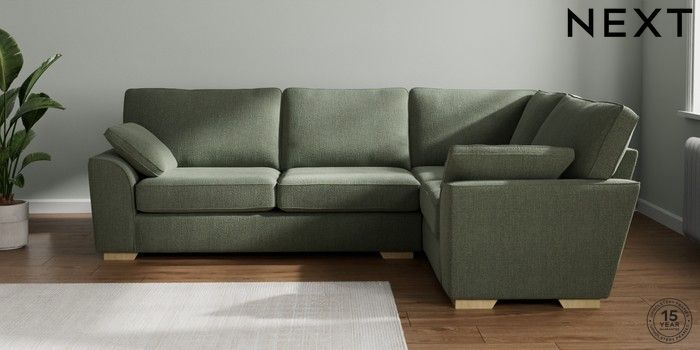 7.2.10 Buy Stamford Large Corner Sofa - Right Hand Chunky Texture Mid Forest Green Large Square Angle - Light from the Next UK online shop Click here to use our accessible website