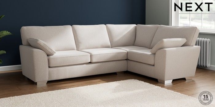7.2.10 Buy Stamford Large Corner Sofa - Right Hand Cotswold Chenille Oyster Large Square Angle - Chrome Metal from the Next UK online shop Click here to use our accessible website