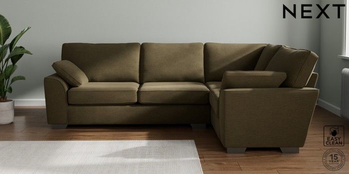7.2.10 Buy Stamford Large Corner Sofa - Right Hand Fine Chenille Easy Clean Dark Moss Green Large Square Angle - Gunmetal from the Next UK online shop Click here to use our accessible website