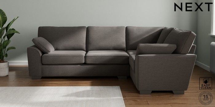 7.3.1 Buy Stamford Large Corner Sofa - Right Hand Fine Chenille Easy Clean Dark Smoke Grey Large Square Angle - Gunmetal from the Next UK online shop Click here to use our accessible website