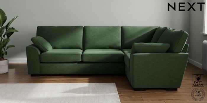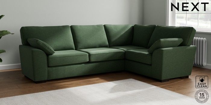 7.2.10 Buy Stamford Large Corner Sofa - Right Hand Fine Chenille Easy Clean Mid Khaki Green Large Square Angle - Dark from the Next UK online shop Click here to use our accessible website